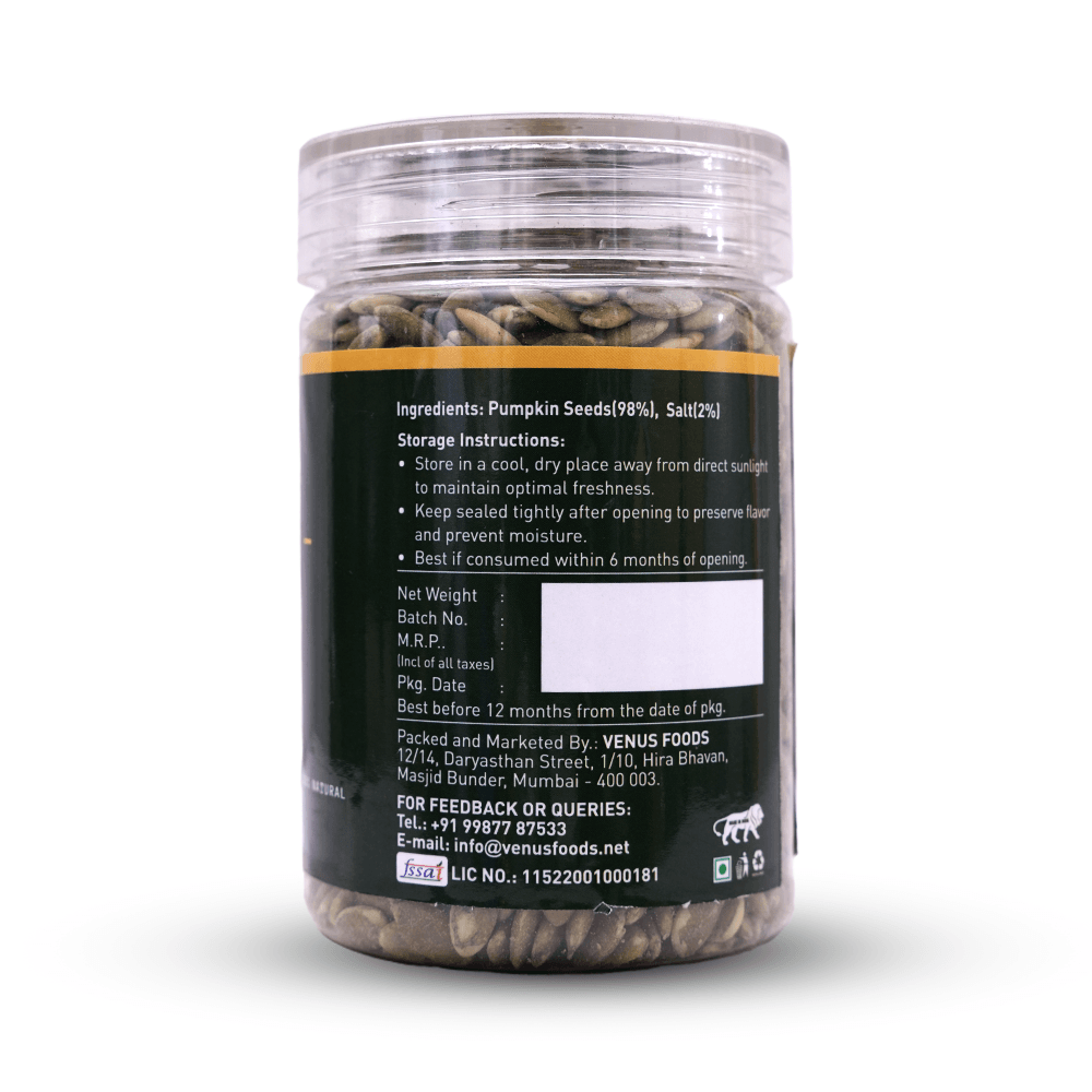 Ingredients : ✔ 100% Pumpkin Seeds & Iodized Salt (2%).